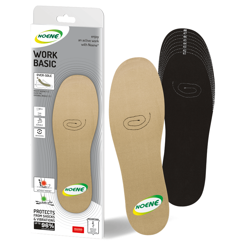 Les semelles WORK BASIC OVER-SOLE PROTÈGENT les pieds même en cas de sollicitations fortes et intenses du pied dues à des changements de direction continus. Elles sont fines, sûres et résistent aux chocs, absorbant les vibrations grâce au tissu en polyester et à la couture en fil antistatique qui empêche l’accumulation d’électricité statique.